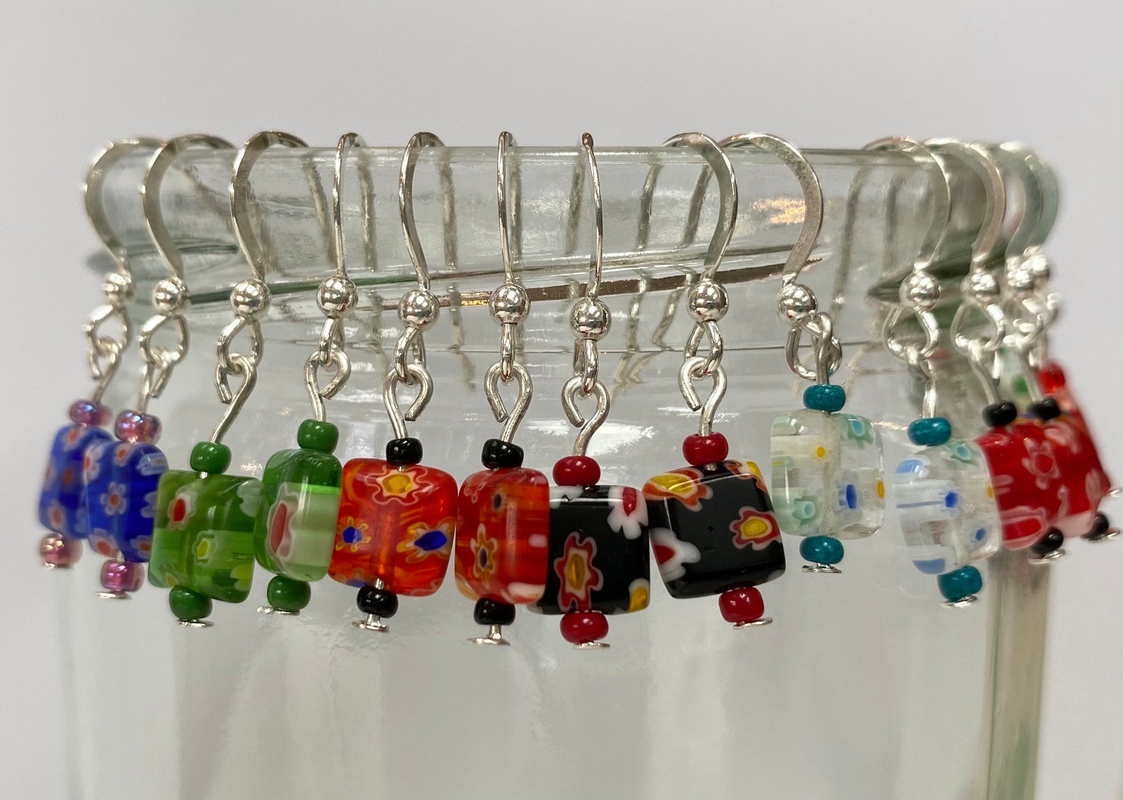 Millefiori glass drop earrings. Sterling silver hooks. £10.