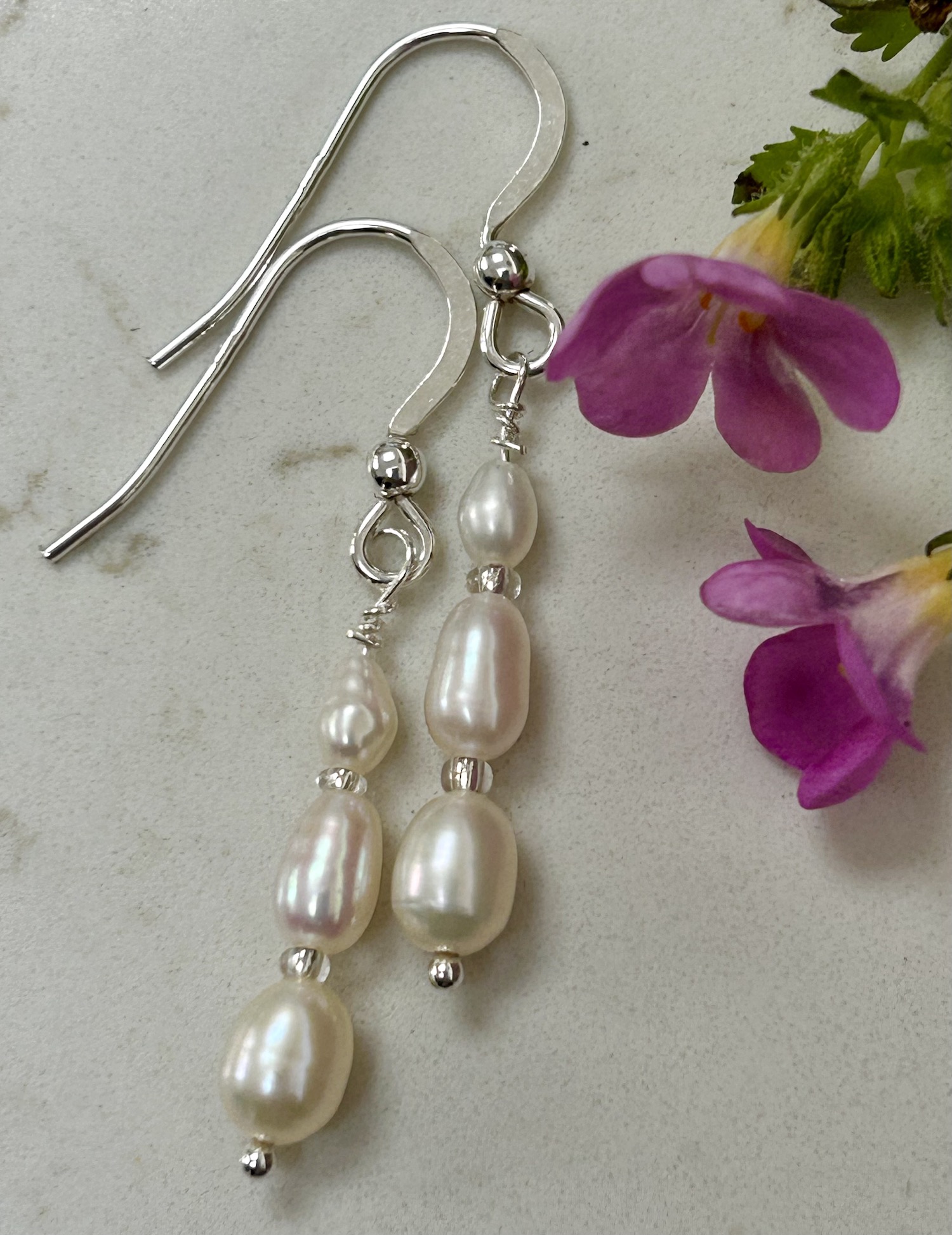Freshwater pearl drop (three pearls) earrings. Sterling silver hooks. £22.