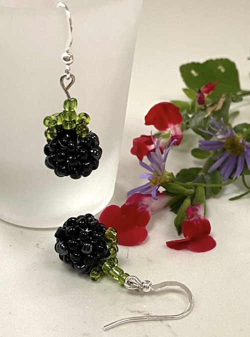 Blackberry seed bead earrings. Sterling silver hooks. £15.