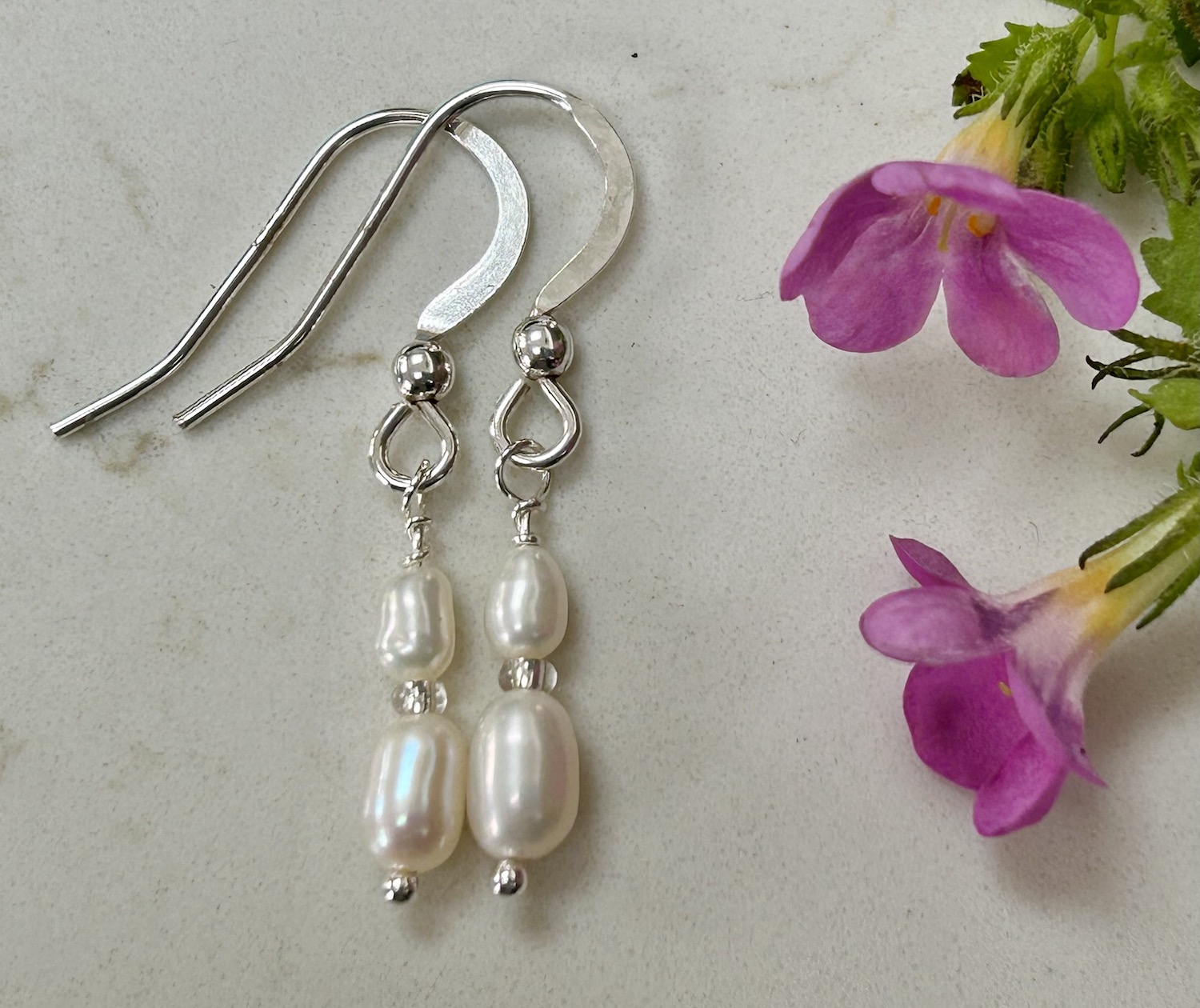 Freshwater pearl drop (two pearls) earrings. Sterling silver hooks. £20.
