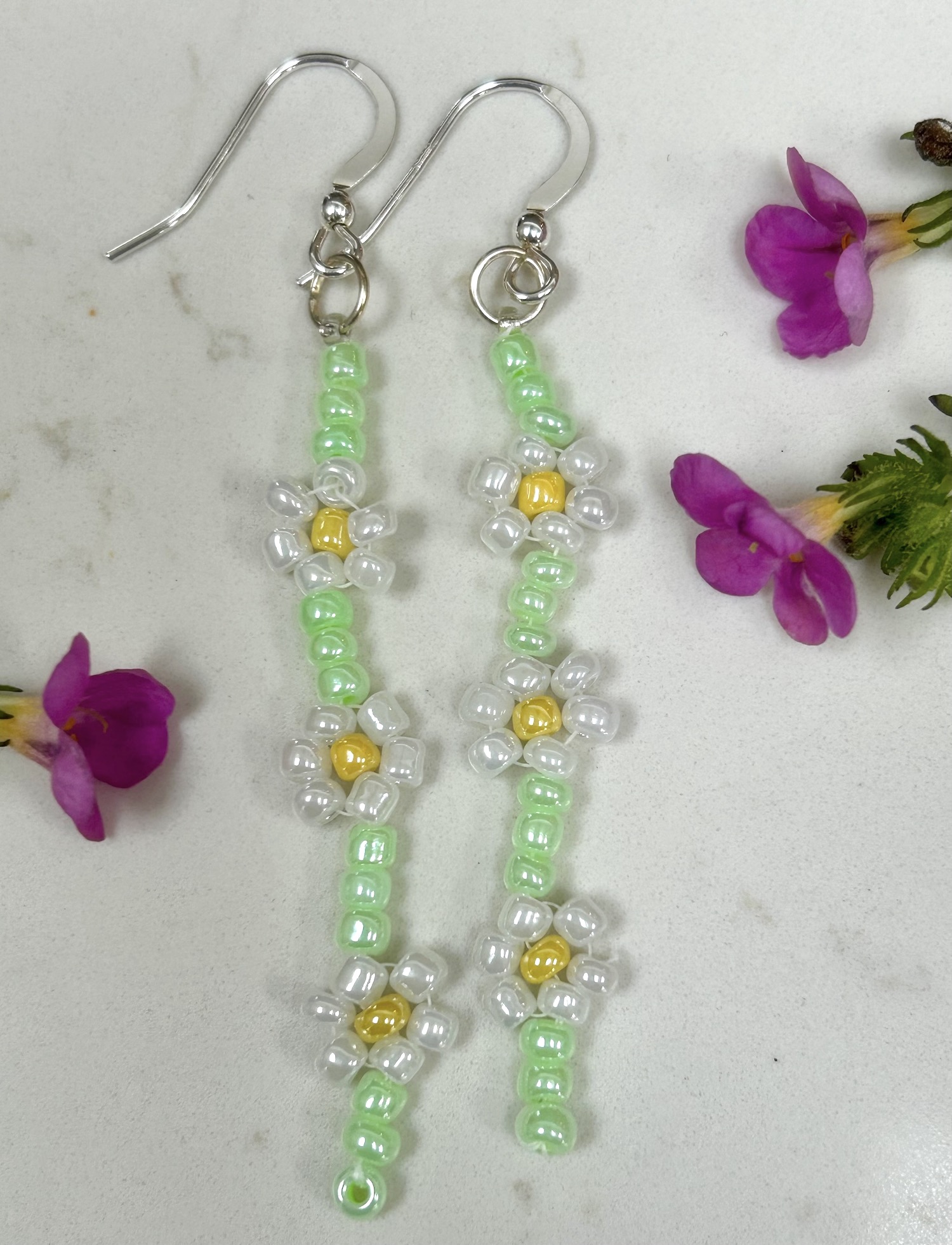 Daisy design in green earrings. Sterling silver hooks. £10.