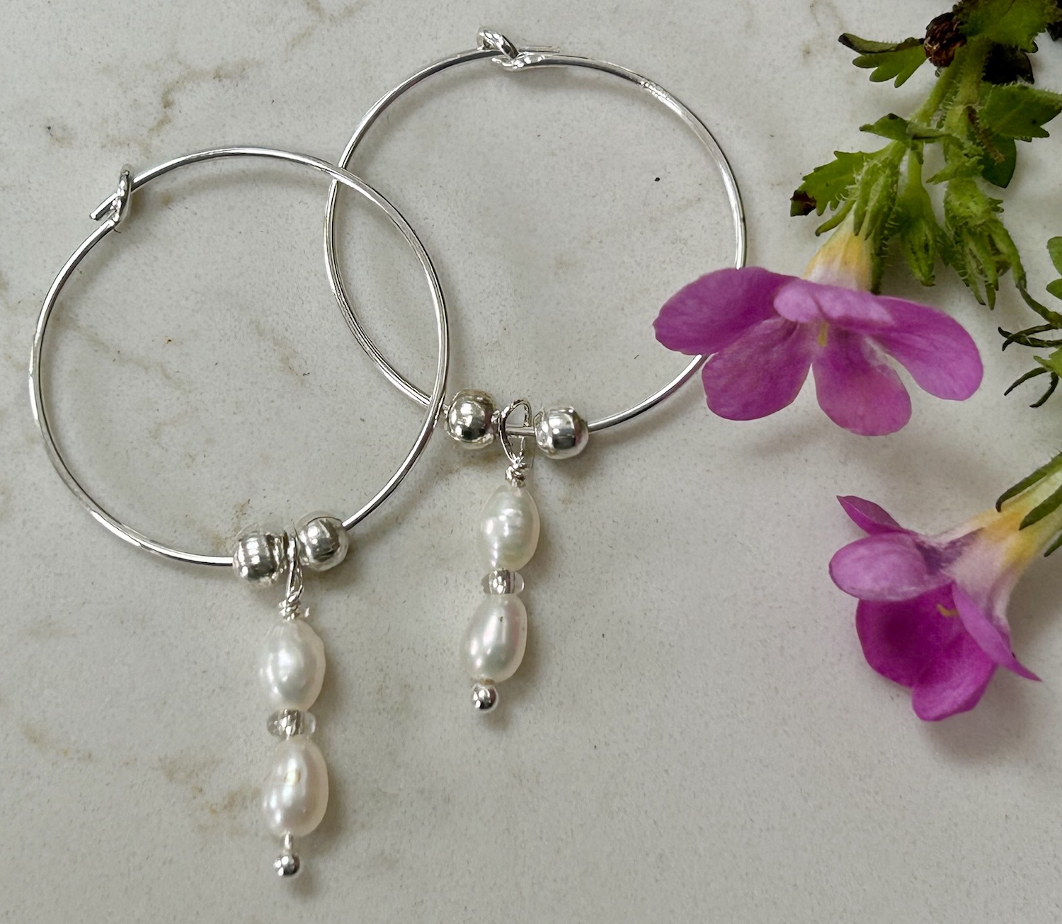 Freshwater pearl hoop earrings. Sterling silver hoops. £20.