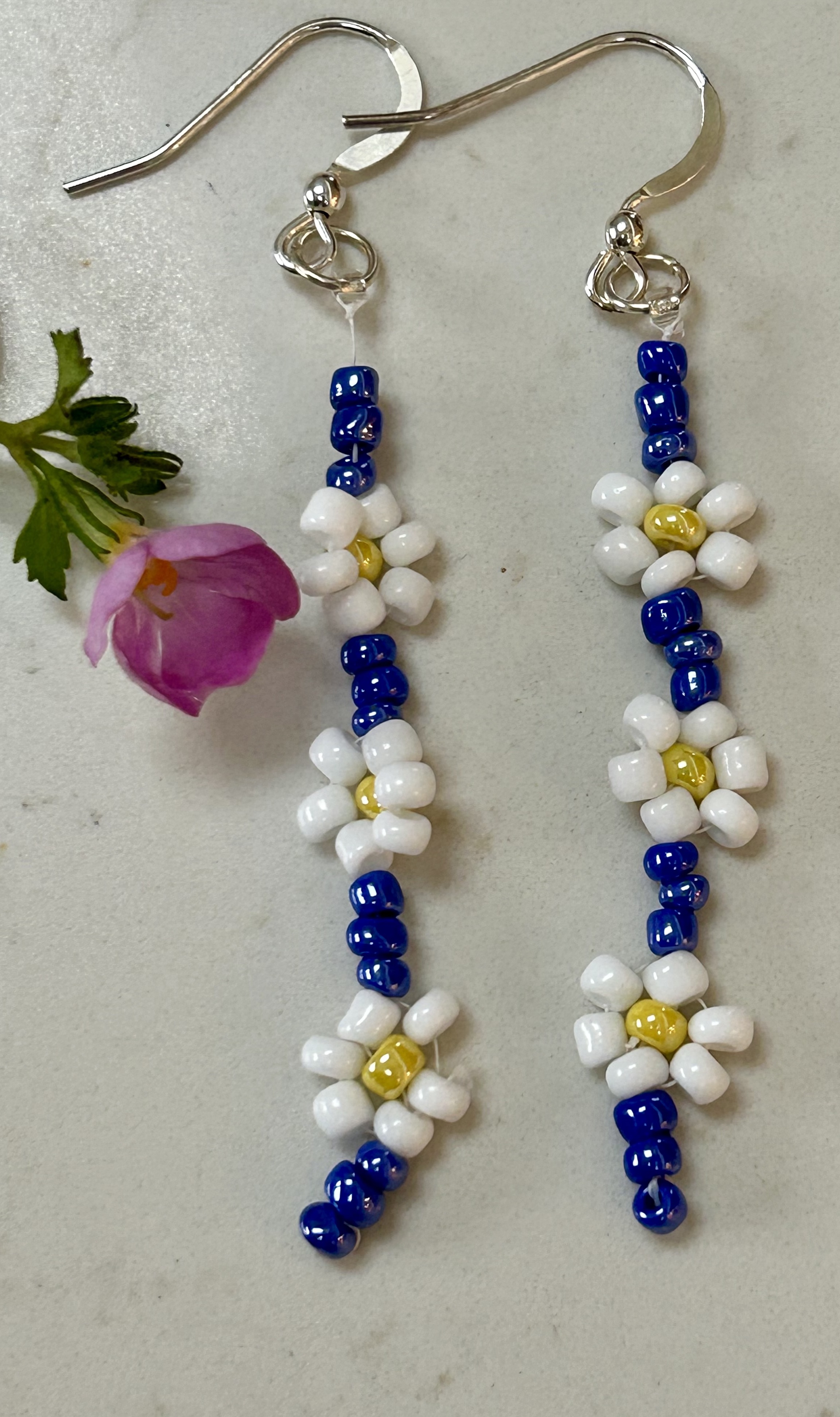 Daisy design in blue earrings. Sterling silver hooks. £10.