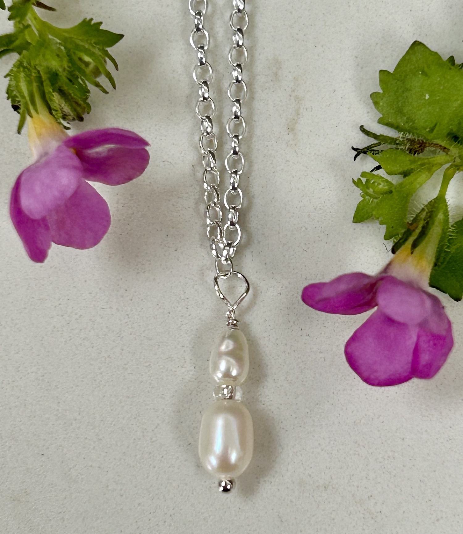 Freshwater pearl (two pearls) necklace. Sterling silver chain (16in, 40cm). £26.