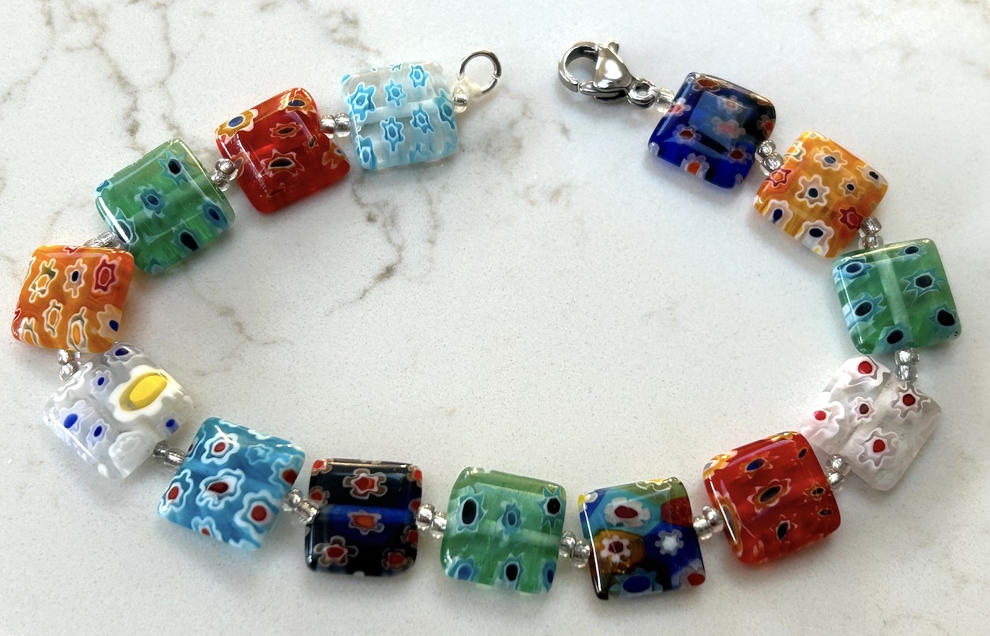 Millefiori glass bead bracelet. 18cm including clasps. £12.