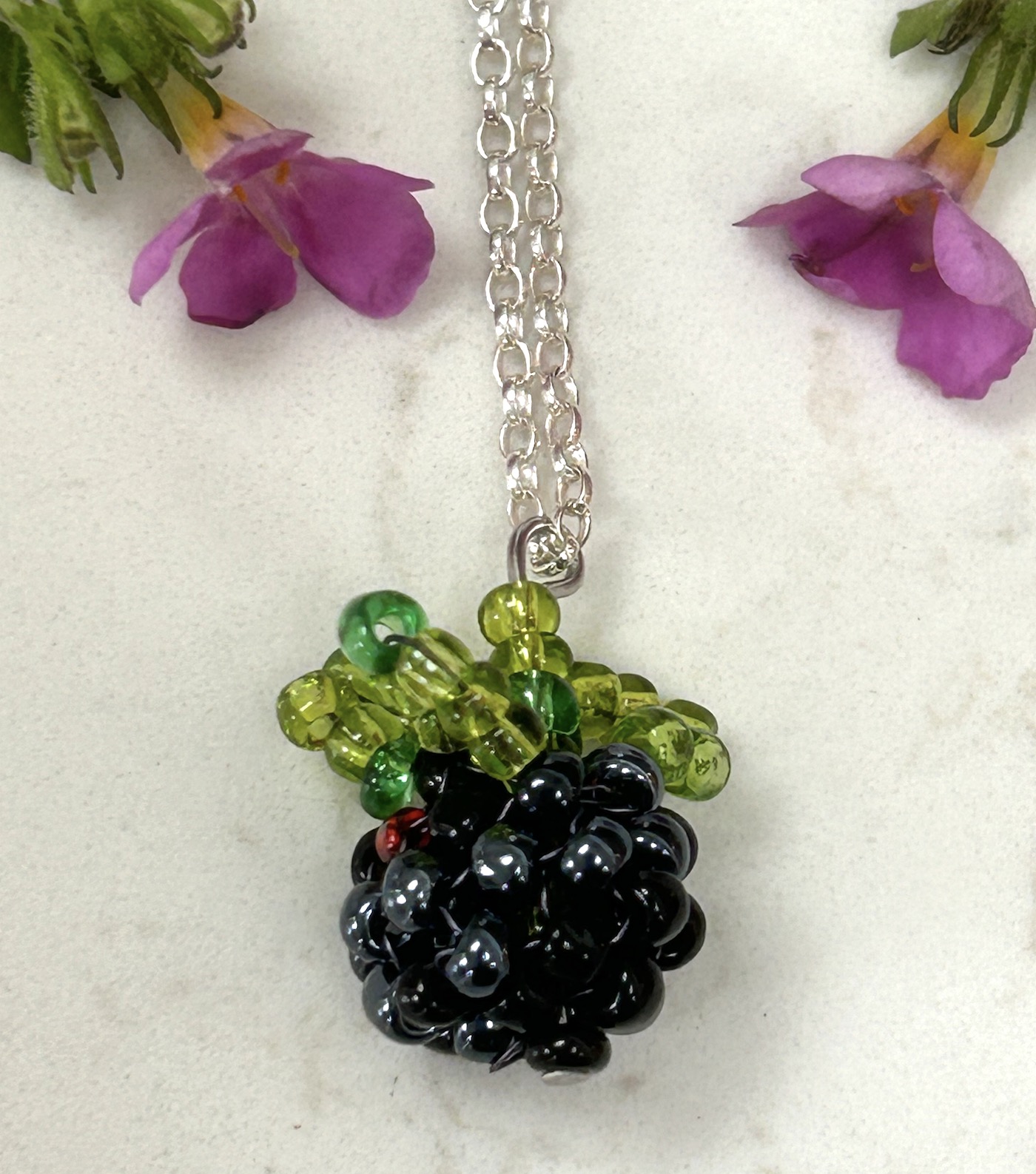 Blackberry seed bead necklace. Sterling silver chain. £25.